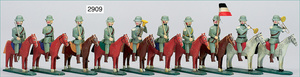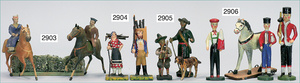 ERZGEBIRGE Reiterschwardrohnen, 10 Teilig, ca 1910, 9 cm, Holzfiguren mit Nase, 3 Musiker, 1 Fahnenträger, Arm an einer Figur fehlt, sonst sehr schöner Orig., Zustand, in alter Spanschachtel