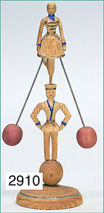 Akrobaten-Balancierspiel, 24 cm, Holz Natur, blaue Streifen mit Goldband beklebt, früh, Höhe 24 cm