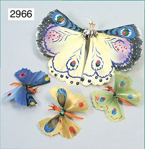 4 Schmetterlinge, fein bemalte Glasarbeit, 7 cm - 12 cm, einige Flügel geklebt, wohl 50er Jahre