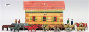 ERZGEBIRGE Brettarche, 41 cm, Fachwerk-handlackiert, ca. 1890, 16 Reifentiere, 6 Reifentiere einzeln, 2 Personen, schöner Orig. Zustand