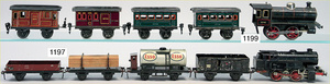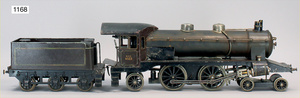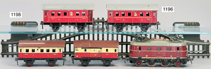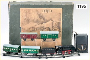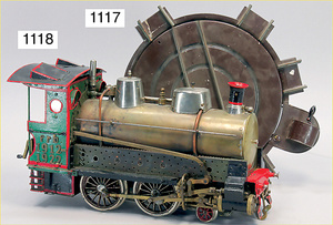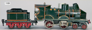 MÄRKLIN Spur 3, 2B1, E.C.E. 4023, Schlepptenderlok, Spiritusantrieb, Blech handlackiert, braun, 3-achsiger Tender, 87 cm, 2 Stirnlampen fehlen, insgesamt schöner Orig.-Zust., mit altersbed. Lackfehlern, Orig.-Brenner, Märklin Spur 3, E.C.E, 4023, 2B1, 90 cm, braun/schwarz, Spiritusantrieb, vor u. rückwärts durch Bremse, durch Hand- u. Gleisschaltung, 2 fest stehende doppelt wirkende Zylinder, mit Ölern, Rundscheibe Bergsteuerung, langsam u. schnell fahrend, Dampfpfeife, Sicherheitsventil, Wasserstandsanzeiger, Druckmanometer, Ablasshahn, Ablauf durch den Kamin, Trieb- u. Kuppelstangen, Kreuzkopfführung, Galeriestangen, spitzes Führerhaus, gewölbte Rauchkammertür, Federpuffer, 2 imitierte Laternen (fehlen), altersbed. Lackfehler, sowie kleinere Brandspuren, insgesamt schöner unberührter Orig.-Zust.