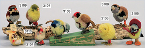 3 Teile Watte, Tauben, Papierflügel, umwickelte Drahtbeine, 8 cm - 12,5 cm