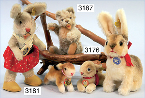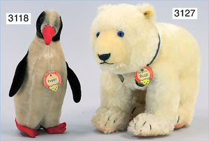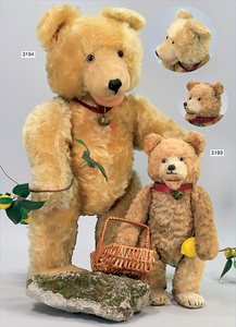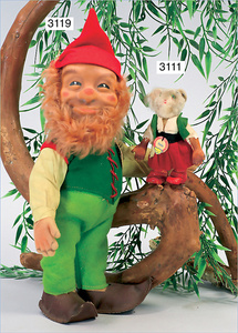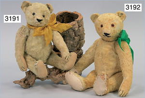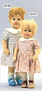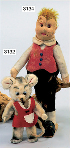 2 Filzpuppen, Lenci Typ, 56 cm, Filz, gemalte Augen, gemalter Mund, angesetzte Ohren, Orig.-bayrische Filz und Stoff-Kleidung, mit Hut, ca. 1920, guter Zust.