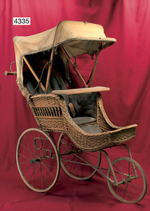 Puppenkinderwagen, 48 cm, Speichenräder, Holz-Griffstange gedreht, Orig.-Verdeck, sehr schöne Gr.