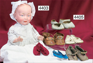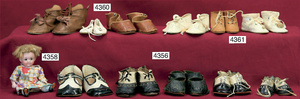 3 Paar Puppenschuhe, ca. 1910, Gr. 6,5 cm - 8,5 cm, dazu 4 Paar Puppenschuhe neuer