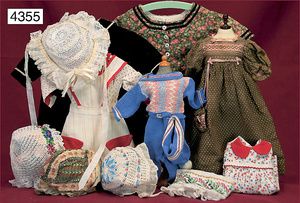 Konv. 4-teilig, Puppenkleider, ca. 1910, für Puppen 25-40 cm
