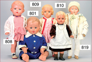 Konv. Puppenkleidung, teilw. Handarbeit, gestrickt u. gehäkelt, dazu einige Puppen-Perücken