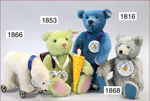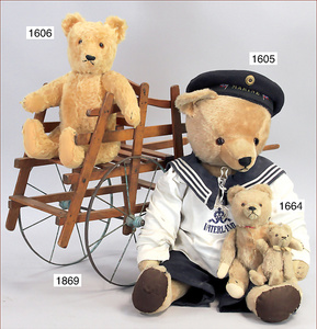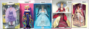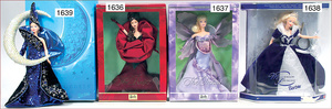 4 Porzellan-Puppenköpfe, 1 x mit Brustblatt, gemarkt 4, blaue fest eingesetzte Glasaugen, geschl. Mund, 1 x Brustblatt mit Kurbelkopf, gemarkt 1, blaue fest eingesetzte Glasaugen, geschl. Mund, durchst. Ohren, 1 x gemarkt 4, blaue fest eingesetzte Glasaugen, geschl. Mund, 1 x gemarkt 3., braune fest eingesetzte Glasaugen, geschl. Mund, durchst. Ohren, kl. Fehler im Porzellan