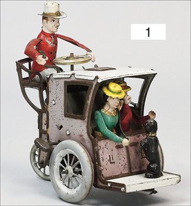 CARETTE Landaulette, Blech lithogr., Fahrerfigur handlackiert, Uhrwerk intakt, teilweise farblich ausgebessert