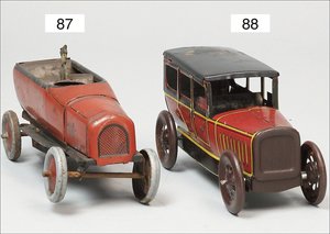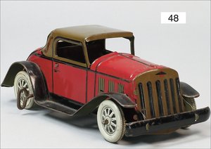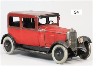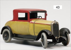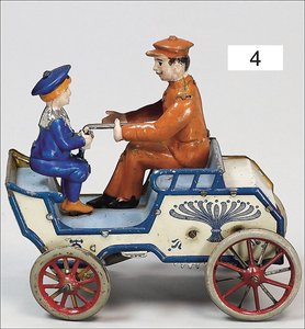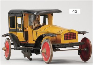 Landaulette, Frankreich, ca. 1925, 22 cm, Blech lithogr., 2 Türen zum Öffnen, Fahrerfigur, Uhrwerk defekt, sonst leicht bespielt, guter Zust.
