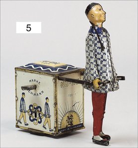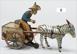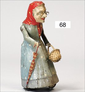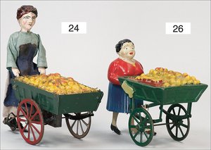 F. MARTIN ca. 1910, Magd mit Früchtewagen, Blech handlackiert, 18 cm, Uhrwerk intakt, guter Zust.