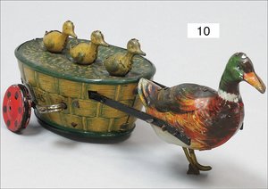 LEHMANN Quack Quack, Entenfamilie, 18,5 cm, Blech lithogr., Uhrwerk intakt, leicht bespielt, guter Zust.