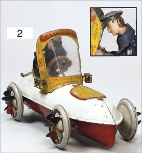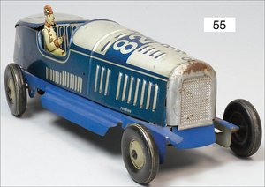 TIPP & CO Rennwagen, ca. 1948, Blech lithogr., mit Fahrerfigur, Uhrwerk intakt, 26 cm, guter Zust., mit leichten Spielspuren