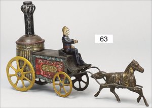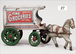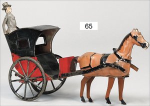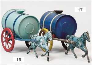 Pferdewagen, Blech handlackiert, Vorkrieg, Schwungradantrieb intakt, kl. altersbed. Lackfehler, insgesamt guter Zust., 21 cm