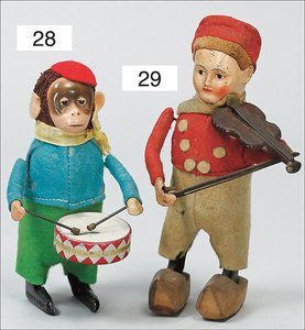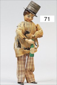 F. MARTIN Trinker, Blech, Stoffkleidung, Kleidung verschlissen, Bemalung ausgebessert, Uhrwerk intakt, 20 cm