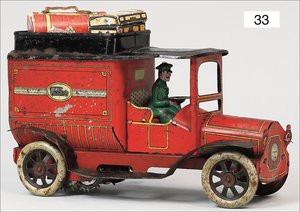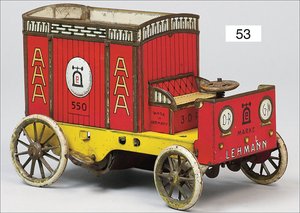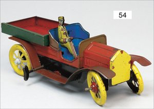 Lkw mit Ladepritsche, ca. 1915, Blech lithogr., 20 cm, Spiralfederwerk intakt, sehr guter Zust.
