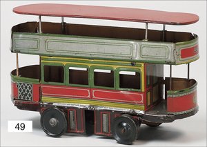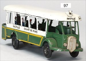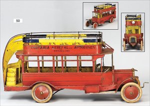 Autobus, Frankreich, 22cm, Uhrwerk intakt, mit Glocke und Reisenden, leicht bespielt, kleinere Lackfehler, gut