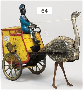 LEHMANN ZULU, Straußenwagen, 721 als Spardose, Uhrwerk klemmt ein wenig, bespielt, altersbed. Lackfehler