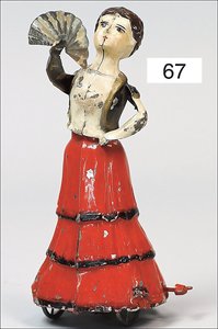 GÜNTHERMANN Tänzerin, um 1900, Blech handlackiert, 19 cm, altersbed. Lackfehler, insg. guter Zust., Uhrwerk intakt