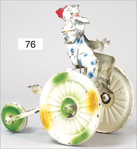 Clown auf Dreirad, Blech, handlackiert, deutsch, 20 cm, Federantrieb intakt, kleinere altersbed. Lackfehler