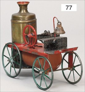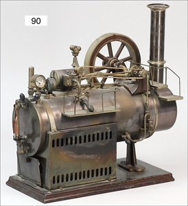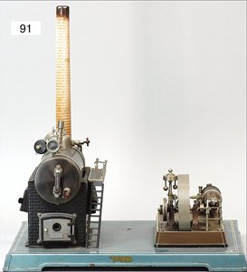 DOLL großes, stationäres Lokomobil, 30er Jahre, Grundplatte 29x16 cm, Kesseldurchmesser 11,5 cm, Manometer, Pfeife, Wasserstandsglas fehlt, mit Brenner, Speisepumpe, Schornstein liegt lose bei, Dachbodenfund, in schönem unberührtem Orig.-Zust., kleines Geländerstückchen fehlt