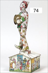 FERDINAND STRAUSS Dandy - Jim the Clown Dancer, USA, Blech, lithogr., 26 cm, Uhrwerk intakt, altersbed. Lackfehler, bespielt