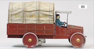 Lieferwagen, Victor Bonnet, Frankreich, 1923, 25 cm, Blech, mit Fahrerfigur und Plane, Uhrwerk geht etwas schwer, schöner Orig.-Zust.