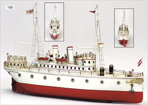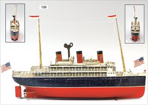 CARETTE Nr. 622/5, Ozeanschraubendampfer, ca 1912, Dampfantrieb, Blech handlackiert, 2 Rettungsboote, Masten in Holz gearbeitet, schöner Orig.-Zust.