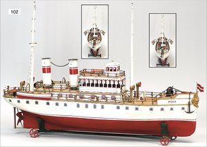 MÄRKLIN RIGA, Dampfer, Blech, handlackiert, ohne Antrieb, möglicherweise etwas ausgebessert, 2 Schornsteine, 2 Rettungsboote, 2 Masten