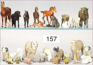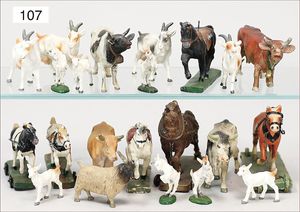 ELASTOLIN ca. 30 Ziegen und Kühe, Masse, dazu 6 Zugpferde, für Bauernhof, Zust. 2-3