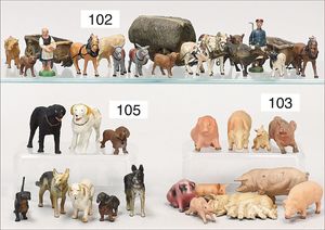 ELASTOLIN und LINEOL Bauernhoffiguren, Masse, ca. 20 Schweine, meist Zust. 2