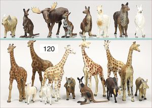 ELASTOLIN 20 Teile Wildtiere, Masse, Giraffen, Lamas, Kängurus, Elch, meist Zust. 2