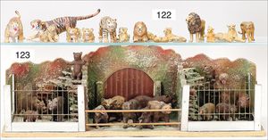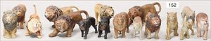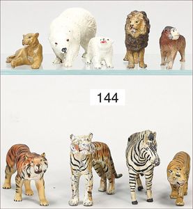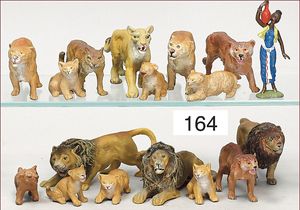 ELASTOLIN; LINEOL 6 Tiger, Masse, 7-teilige Löwengruppe, meist Zust. 2