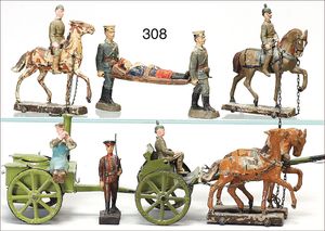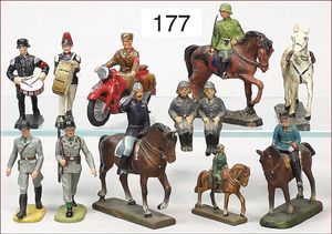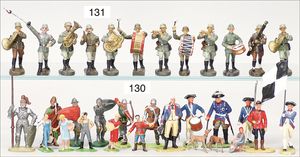 Konv. amerik. Bürgerkrieg, ELASTOLIN, Masse, Reiter, 7 Teile Musiker, dazu 2 x LINEOL, engl. Garde, sowie 4 Teile Franzosen, LINEOL und ELASTOLIN, Zust. 2-3