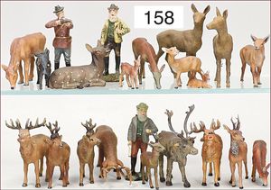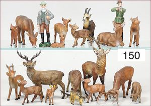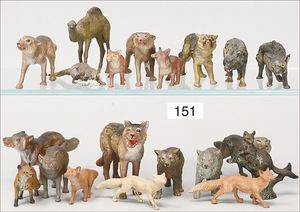 ELASTOLIN und LINEOL 19 Teile, Waldtiere, Dachs, Biber, Fischotter, Eichhörnchen, Stachelschwein, Gürteltier, 3 Störche, meist Zust. 2