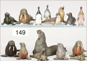 ELASTOLIN Konv. 10 Teile, dazu gr. stehender Eisbär, ELASTOLIN, 12 cm, meist Zust. 2