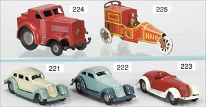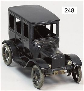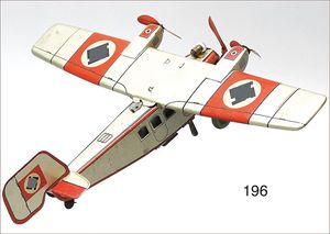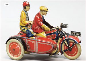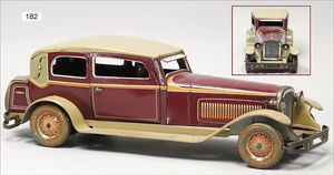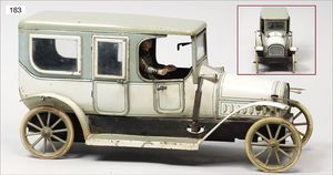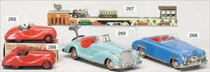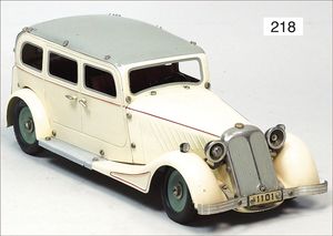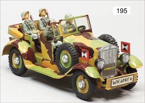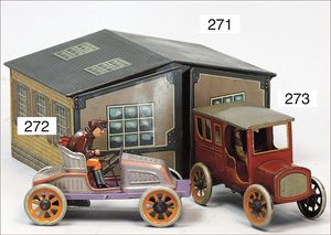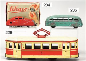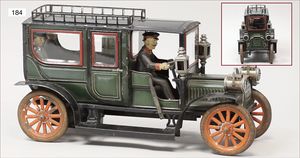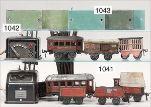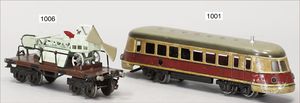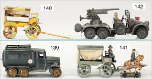3-achsiger Lazarettwagen, Blech lithogr., 19 cm, 1 Rad etwas ausgeschlagen, bespielt, gut