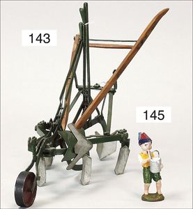 Pflug, 41 cm, Holz/Metall, aufwendig gearbeitet, 1 Griff fehlt