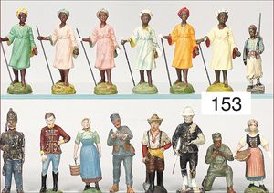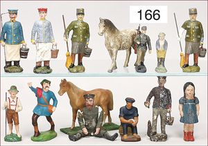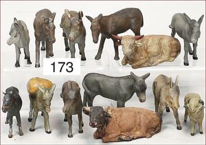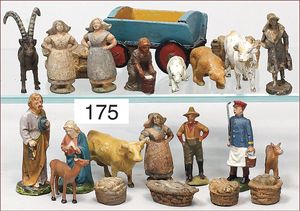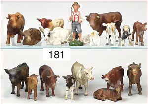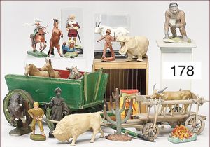 Masse, kl. Serie, Bauernhoffiguren, Gespanne, Esel, Kühe, Bauer mit Magd, 6,5 cm, meist Zust. 2