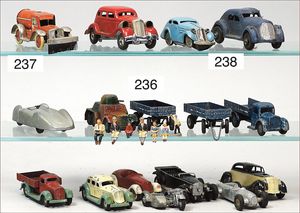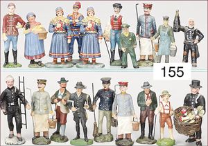 ELASTOLIN 6 Teile, Bahnhofsfiguren, passend zu Spur 0, 5,5 cm, dazu 4 Figuren sitzend, 2 kl. Massefiguren, 2 Bahnhofsfiguren, 7 cm, alles sehr guter Zust.