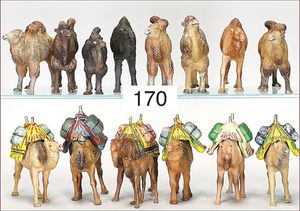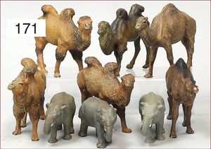 ELASTOLIN, LINEOL 14 Teile, Masse, Kamele und Dromedare, meist Zust. 2