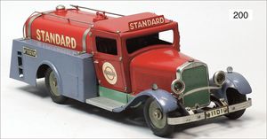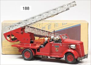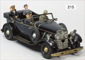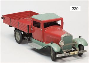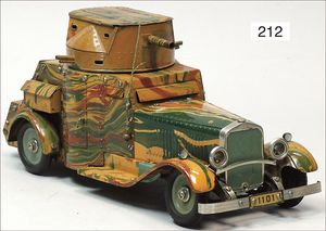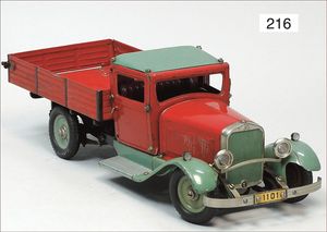 HAUSSER 3-achsiger LKW, mit Geschütz, Blech, 25 cm, 1 Lampe liegt lose bei, leicht bespielt, gut
