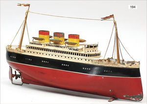 PIKO Bakelit-Schiff, wohl frühe DDR-Produktion, 40 cm, bespielt, ohne Antrieb