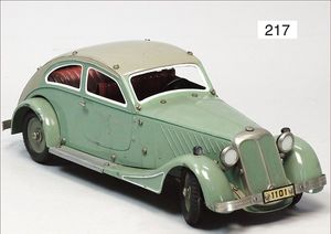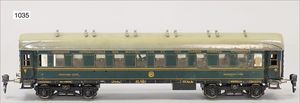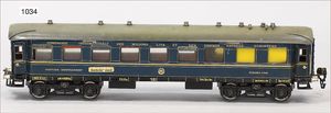 MÄRKLIN Spur 0, 1943J, 4-achsiger Schlafwagen, 40 cm, grün/blau, 1934-1939, bespielt, bis auf kl. Stellen gut, 1 Zuglaufschild fehlt