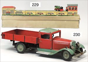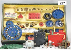 Konv. Gleismaterial, ca. 25 Teile Progressschienen, elektrische Ausführung, 1 Handweichenpaar, leicht Flugrost, dazu 1 Transformator 20 Volt, im Karton, optisch sehr guter Zust., 1 Schaltgerät 13472, sehr guter Zust.