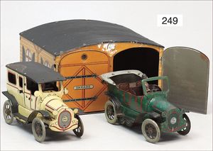 MÄRKLIN Uralt, Lokschuppen, Blech handlackiert, 22,5 cm x 27 cm x 21 cm, kl. Lackfehler an einer Tür, sonst sehr schöner Orig.-Zust., schöne Farben