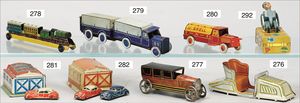 MÄRKLIN Fass, Carcoyle, kl. Verladeschere, dazu Handwagen, mit 4 Teilen Ladegut, Blech lithogr., sehr guter Zust.