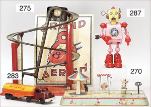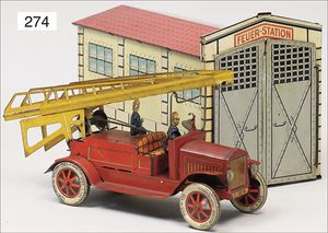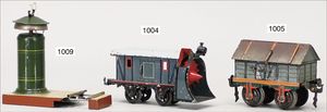 kl. Lokomobil, 7,5 cm, ohne Funktion, Ladegut für einen frühen MÄRKLIN-Wagen, altes MÄRKLIN-Zeichen, am Kessel hinten schwach erkennbar, guter Zust.