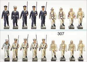 8 Marinefiguren, Masse, ELASTOLIN, 7 cm, dazu 6 Panzerfahrer, ELASTOLIN u. a., Zust. 2-3