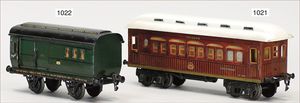 Durchgangswagen, MÄRKLIN Spur 0, 13 cm, 1821, grün, handlackiert, 4 Türen, gotische Fenster, Inneneinrichtung 1907-1914, Hakenkupplung, sehr guter Orig.-Zust.